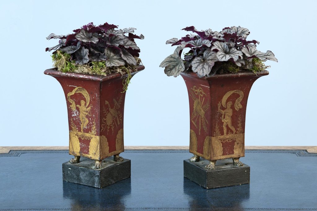 19th Century Pair of Red Toleware Planters