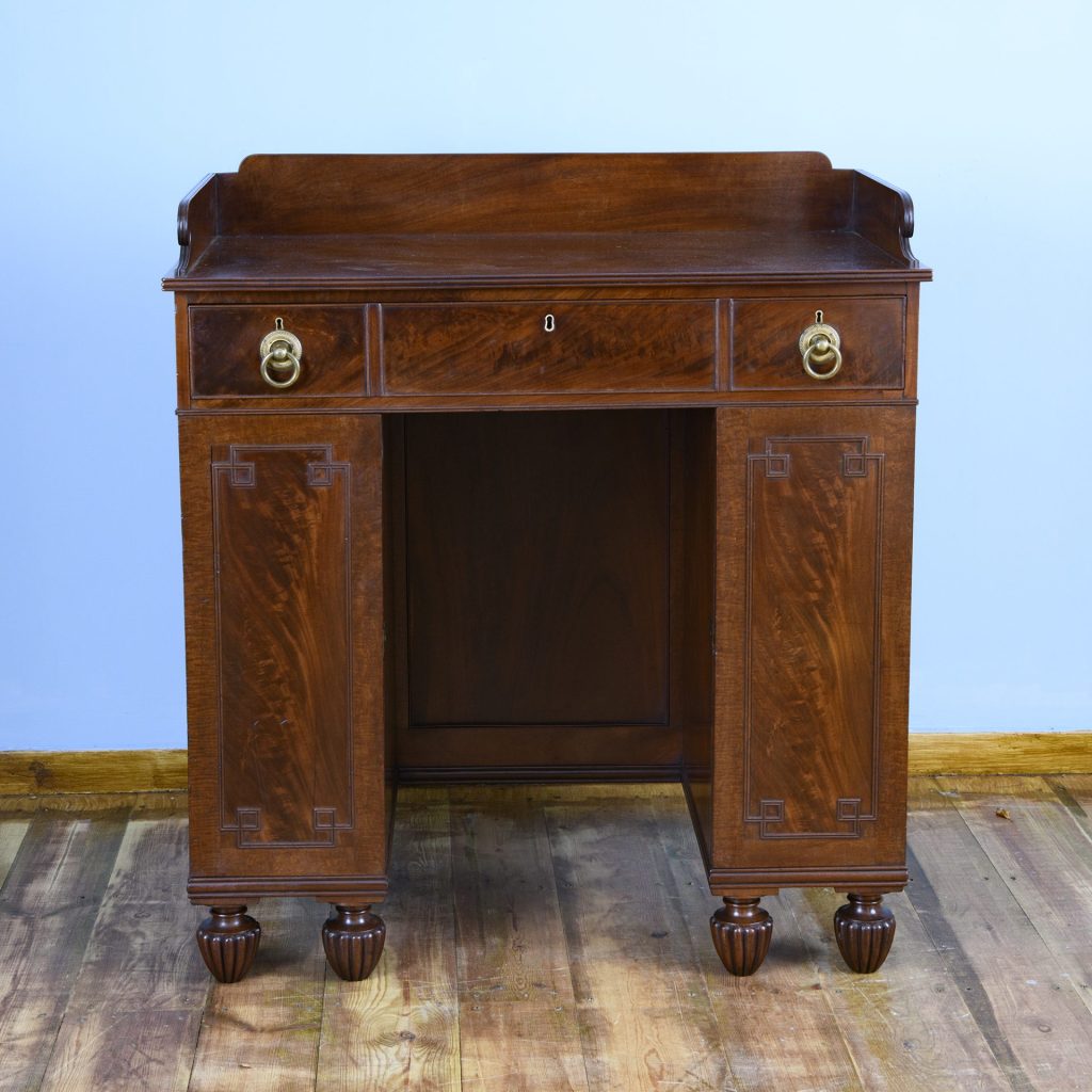 The mahogany veneered pie crust top is made with seasoned 18th century mahogany. The top sits on a bird cage mechanism and the underside of the top is varnished and coloured as per the workings of Hagen. The gilt brass catch is original to the date of manufacture.