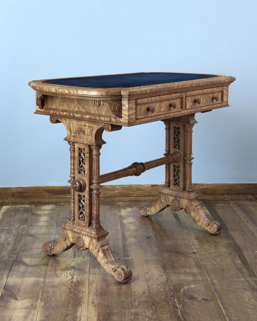 Late Georgian 19th century period satin birch inlaid Library table.